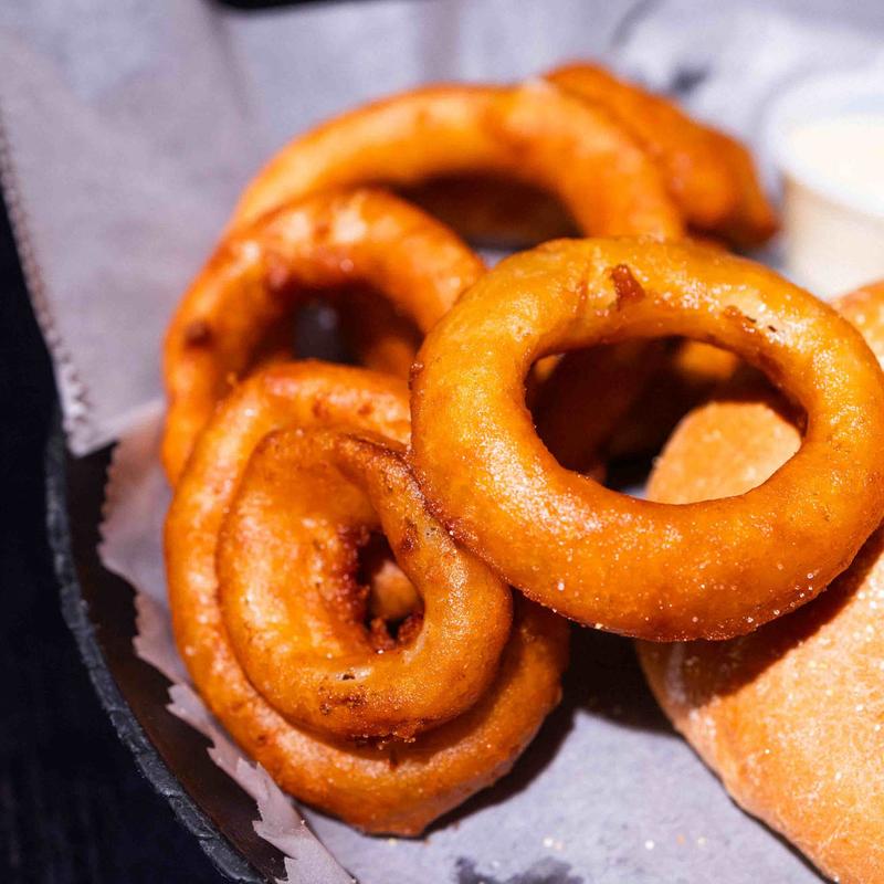 6 oz freshly prepared burger with French fries. Served on a toasted Kaiser roll • Toppings: mustard, mayo, ketchup, lettuce, tomato, onion & pickle | Add Bacon +$1.65 | Substitute Onion Rings or Tater Tots for an additional +$1.05 or a Salad for +$1.65